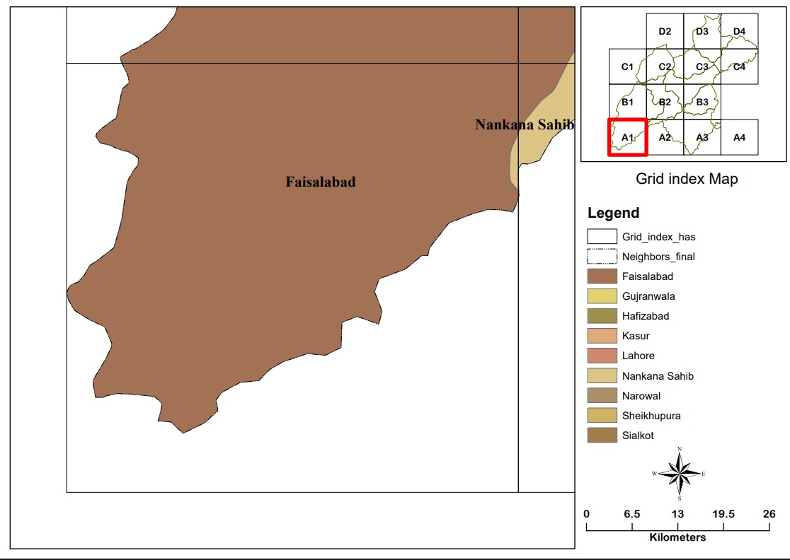 Tool: ArcMap Description: Grid Index Map of Upper Punjab. Grid Series Maps are useful for the visualization of larger areas, such as South Asia, and also to show each country in one single grid index, and to analyze its properties(legends). In this map, each index stores a single district.